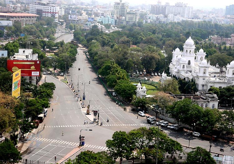 Traffic on the road in front of the state Assembly being diverted, the busy road sports a deserted look in Hyderabad on Wednesday. INN Photos