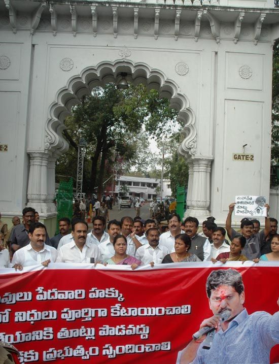 Legislators loyal to former MP YS Jaganmohan Reddy on Wednesday undertook a padayatra from Indira Park to Assembly in support of his fast on the fee reimbursement arrears issue which entered its sixth day today.