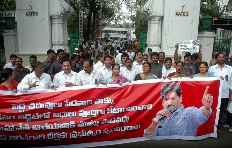 Legislators loyal to former MP YS Jaganmohan Reddy on Wednesday undertook a padayatra from Indira Park to Assembly in support of his fast on the fee reimbursement arrears issue which entered its sixth day today.