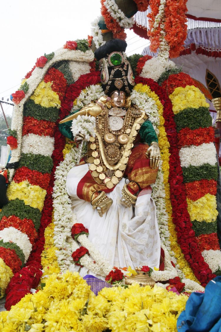 Processional Deity of Lord Sri Kalyana Venkateswara Swamy in form of Mohini Avatharam was taken out in procession atop Pallaki as part of 5th day ongoing Annual Brahmotsavam in Sri Kalyana Venkateswara Swamy Temple in Srinivasa Mangapuram near Tirupati on saturday morning. Earlier Garlands of Andal Ammavaru was taken out in procession from Sri Govindaraja Swamy Temple to Srinivasa Mangapuram. This garlands will be used on Garuda Vahanam in the evening.