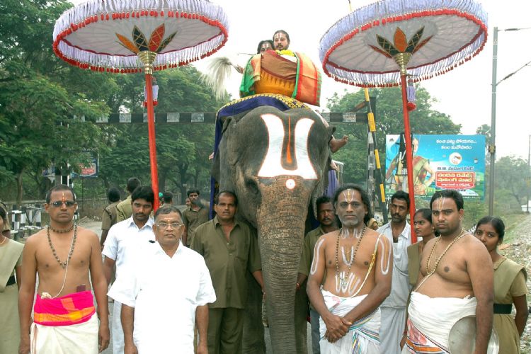 Processional Deity of Lord Sri Kalyana Venkateswara Swamy in form of Mohini Avatharam was taken out in procession atop Pallaki as part of 5th day ongoing Annual Brahmotsavam in Sri Kalyana Venkateswara Swamy Temple in Srinivasa Mangapuram near Tirupati on saturday morning. Earlier Garlands of Andal Ammavaru was taken out in procession from Sri Govindaraja Swamy Temple to Srinivasa Mangapuram. This garlands will be used on Garuda Vahanam in the evening.