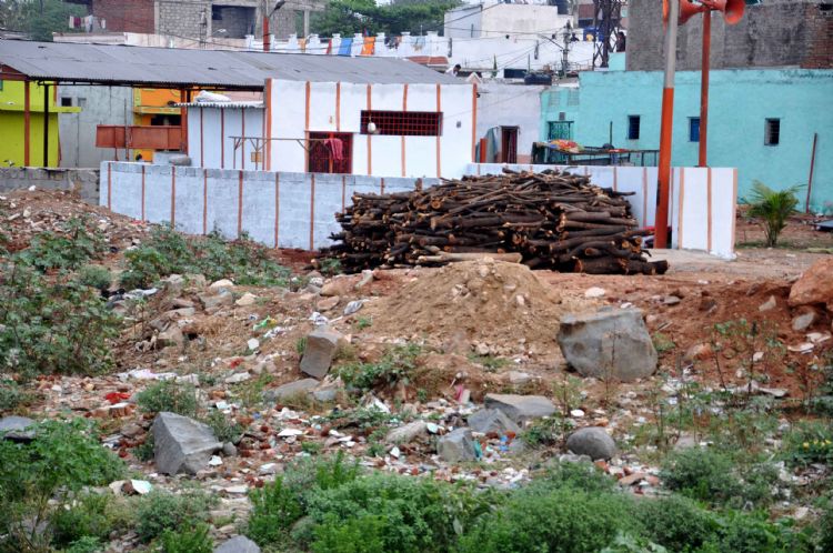 Systematic encroachments on the Musi River at Chaderghat Causeway Bridge in Hyderabad. Land grabbers are dumping debris from dismantled buildings on the river bed and then selling this filled up lands at about Rs 5,000 to Rs 7,000 per square yard. If the blocking of the water flow continues, the house around will be in great danger of being inundated when the river is in spate in monsoon season.