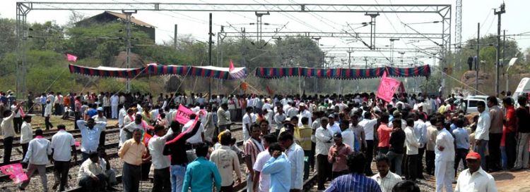 Pro-Telangana activists stop Godavari Express in Secunderabad during their demonstration demanding a separate state. Rail transport was paralysed in Hyderabad and nine other districts of Andhra. INN Photos