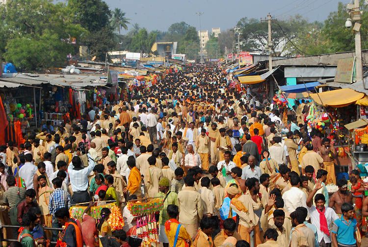 Lakhs of devotees throng Sri Bhramarambika Mallikharjuna Swamy temple in Srisailam on the occasion of Maha Sivaratri on Wednesday. INN Photos