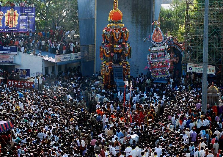 Srisailam Radhotsavam: Radhotsavam of Sri Brahmaramba Mallikharjuna Swamy was held in the streets of Srisailam on Thrusday evening, traditionally held a day after the celestial wedding of the Lord Shiva on Maha Sivaratri. Lakhs of devotees participated in the Rathotsavam.