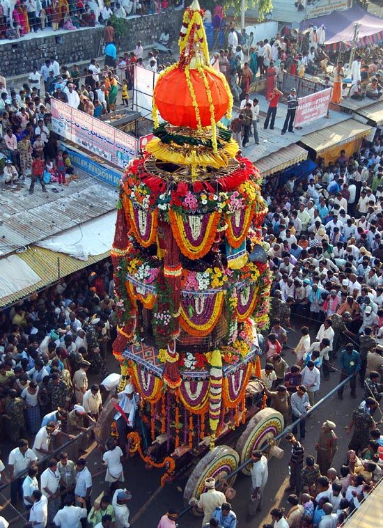 Srisailam Radhotsavam: Radhotsavam of Sri Brahmaramba Mallikharjuna Swamy was held in the streets of Srisailam on Thrusday evening, traditionally held a day after the celestial wedding of the Lord Shiva on Maha Sivaratri. Lakhs of devotees participated in the Rathotsavam.