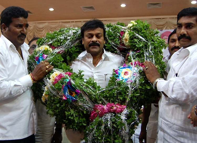 Praja Rajyam Party president K Chiranjeevi addresses party members at a State Committee and Party General Body, Joint State-Level meeting held at Vasanth Vihar Kalyanamantapam, Nagole, LB Nagar in Hyderabad on Monday. INN Photos