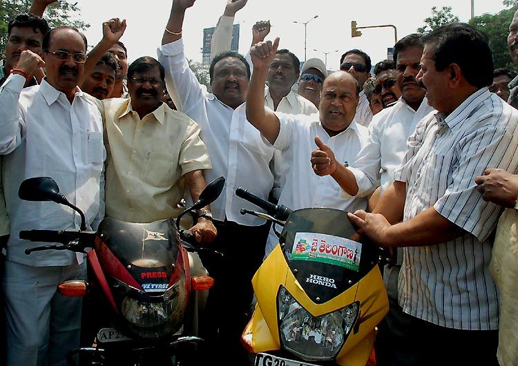 Pro-Telangana activists protest at Gun Park in Hyderabad on Tuesday and then proceed on a ‘Bike Rally’ to press for the introduction of a Telangana Bill in Parliament. INN Photos