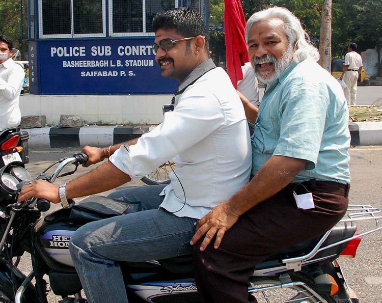 Pro-Telangana activists protest at Gun Park in Hyderabad on Tuesday and then proceed on a ‘Bike Rally’ to press for the introduction of a Telangana Bill in Parliament. INN Photos