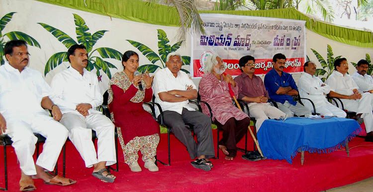 Pro-Telangana leaders address media persons at Somajiguda Press Club in Hyderabad on Wednesday on the eve of the proposed Million March. INN Photos.