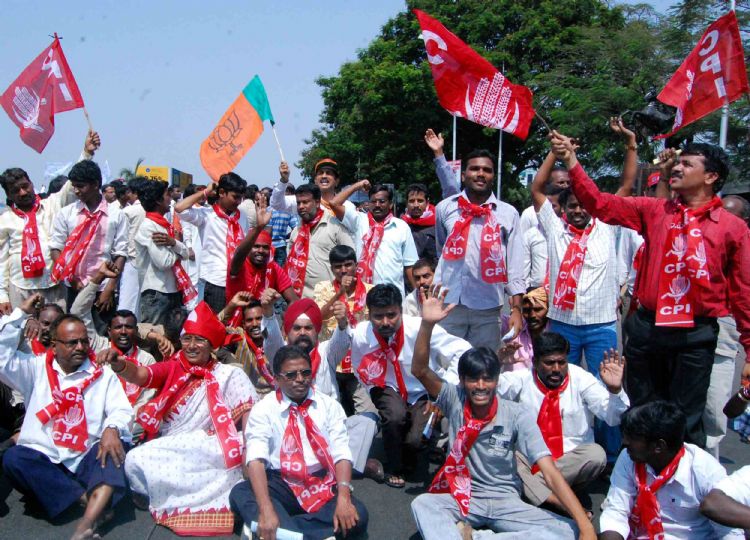 In a major show of strength, thousands of people violated ban orders and removed police barricades to assemble at Tank Bund area here on Thursday as part of the 'million march' for a separate Telangana state. The peaceful protest during the day was marred by incidents of violence in the evening. Protesters damaged some statues of Telugu leaders on Tank Bund, set afire a police vehicle and attacked a vehicle and crew of a television channel. -INN Photos