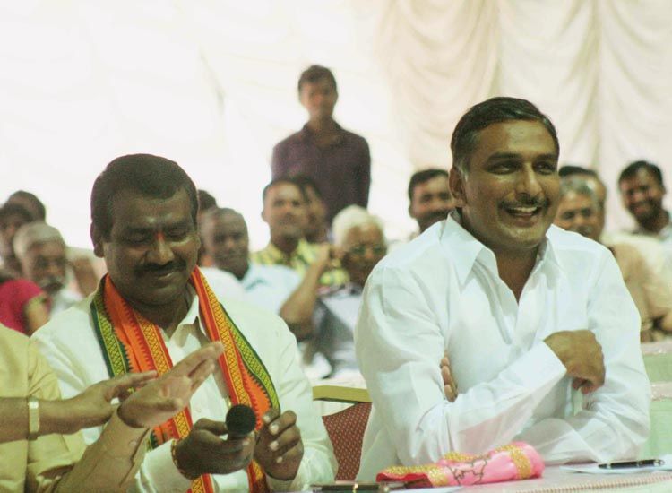 Former Deputy Speaker K Harishwar Reddy chairs the Mock Assembly Session at a function hall in Hyderabad on Monday. The Session was organised by Telangana Journalists Union in which 27 MLAs and one MLC from Telangana participated. INN Photos