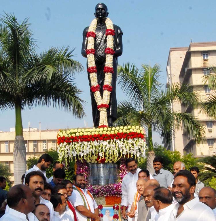 Chief Minister N Kiran Kumar Reddy pays floral tributes to the statue of Amarajeevi Potti Sree Ramulu on the occasion of his Jayanthi celebrations in Hyderabad on Wednesday. INN Photos