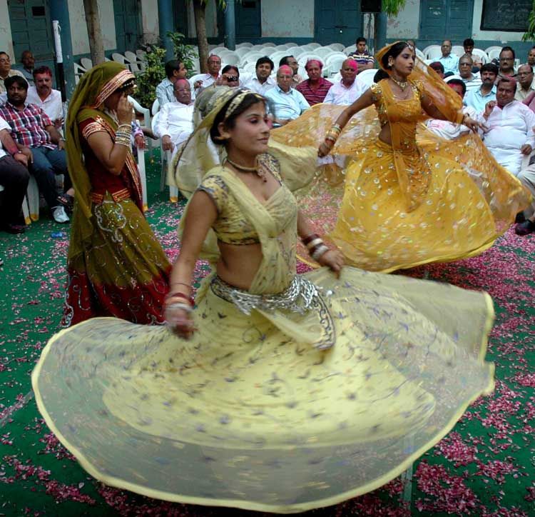 Dancers from Rajasthan perform at a Holi Milan function organised by the Agarwal Samithi at Agarwal High School in Gulzar Houz in Hyderabad on Saturday. INN Photos