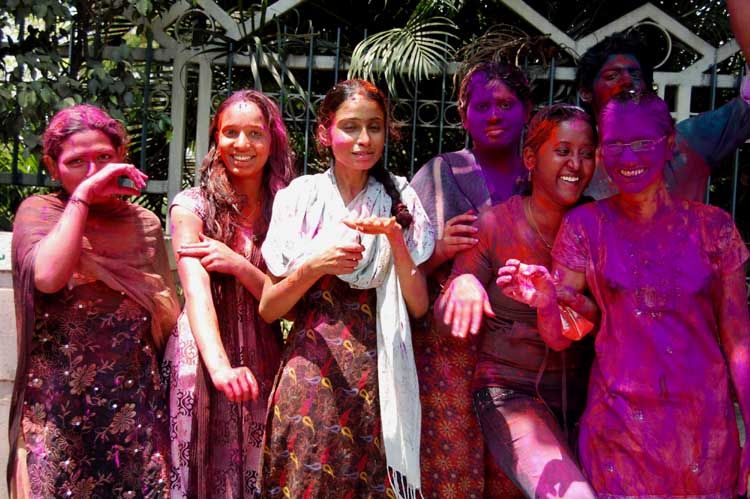 Youngsters play Holi on the road at Banjara Hills in Hyderabad on Saturday. INN Photos