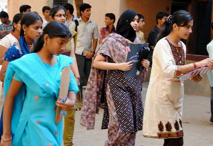 Students queue up at the entrances of one of the examination centres as the SSC exams begin in Hyderabad on Thursday. INN Photos