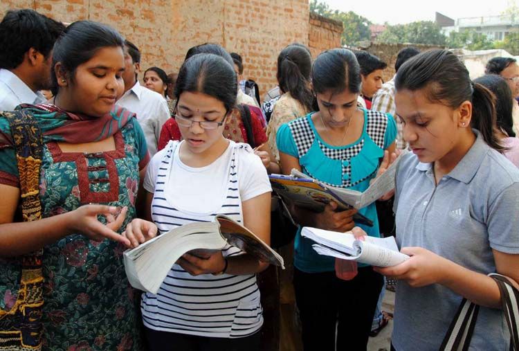 Students queue up at the entrances of one of the examination centres as the SSC exams begin in Hyderabad on Thursday. INN Photos