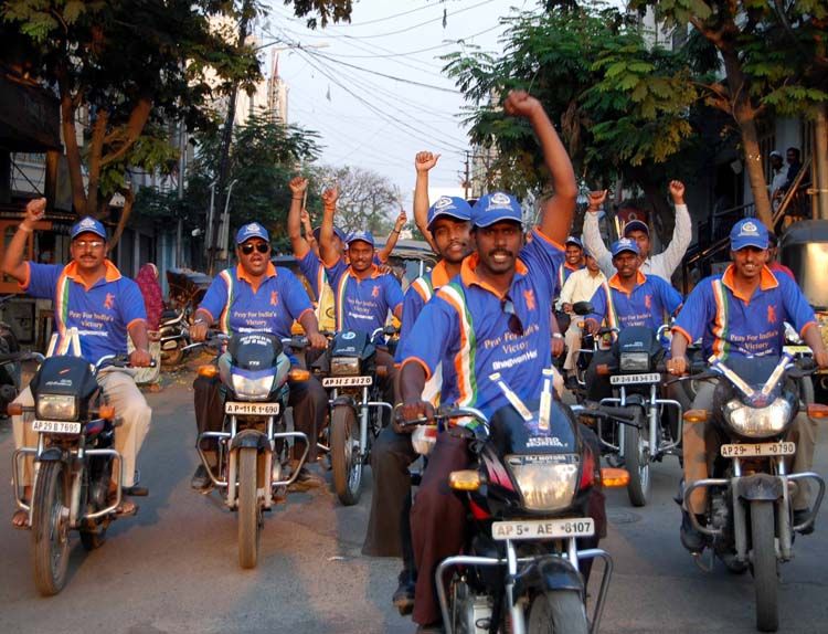 Cricket fans take out a rally and distribute incense sticks, exhorting people to pray for India’s victory in the Cricket World Cup semi-final clash against Pakistan in Hyderabad on Tuesday. INN Photos