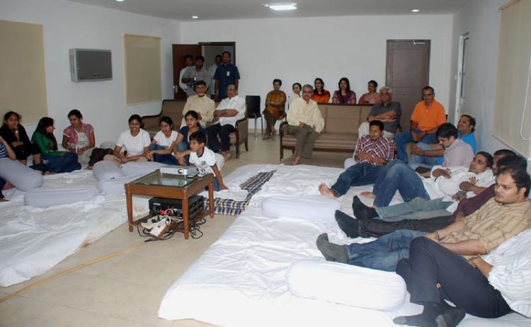 Former chief minister, Telugu Desam party President Nara Chandrababu Naidu watching live telecast of India - Pakistan World Cup semi final match along with family members at his home in Jubilee Hills on Wednesday.