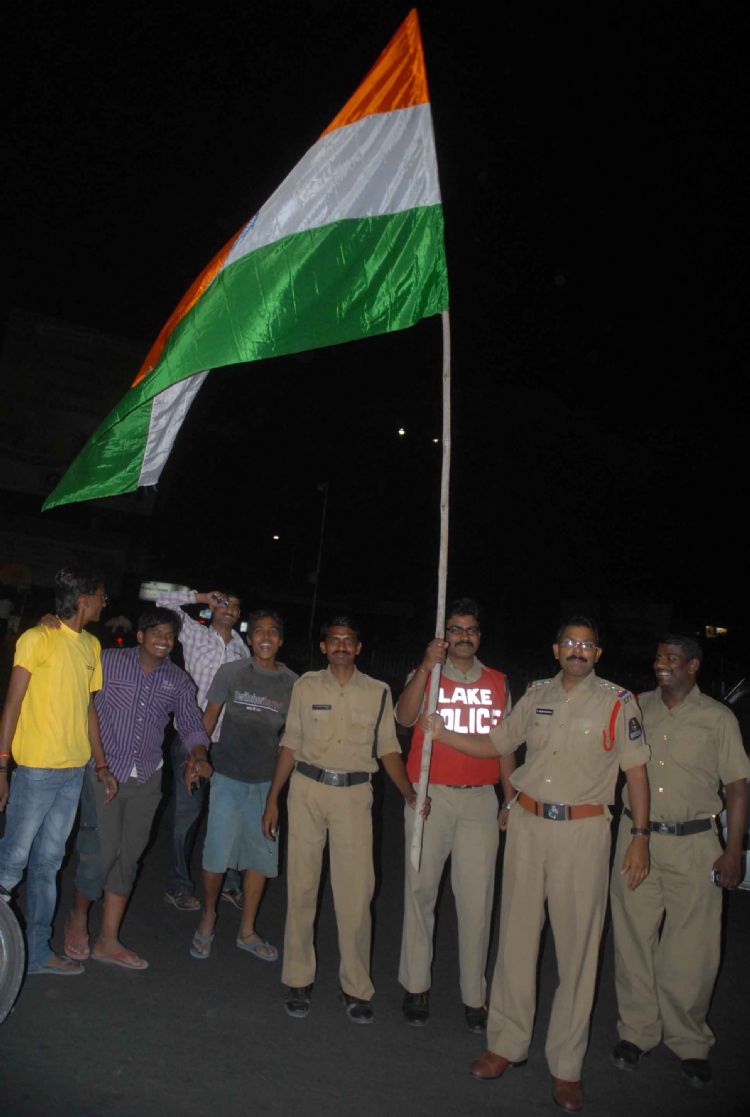 Hyderabad city erupts in joy. Scenes of dancing and singing and bursting of firecrackers witnessed all over the city. As the last wicket fell, fans burst firecrackers and came out on the roads dancing and singing. The policemen, who were out on the roads in good numbers, did not seem to mind the celebrations. Boisterous rallies were taken out on important thoroughfares such as Tank Bund, Necklace Road, Punjagutta-Begumpet main road, KBR Park main road, Musheerabad, Dilsukhnagar, Banjara Hills, and Jubilee Hills.