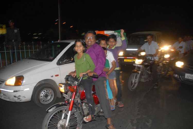 Hyderabad city erupts in joy. Scenes of dancing and singing and bursting of firecrackers witnessed all over the city. As the last wicket fell, fans burst firecrackers and came out on the roads dancing and singing. The policemen, who were out on the roads in good numbers, did not seem to mind the celebrations. Boisterous rallies were taken out on important thoroughfares such as Tank Bund, Necklace Road, Punjagutta-Begumpet main road, KBR Park main road, Musheerabad, Dilsukhnagar, Banjara Hills, and Jubilee Hills.