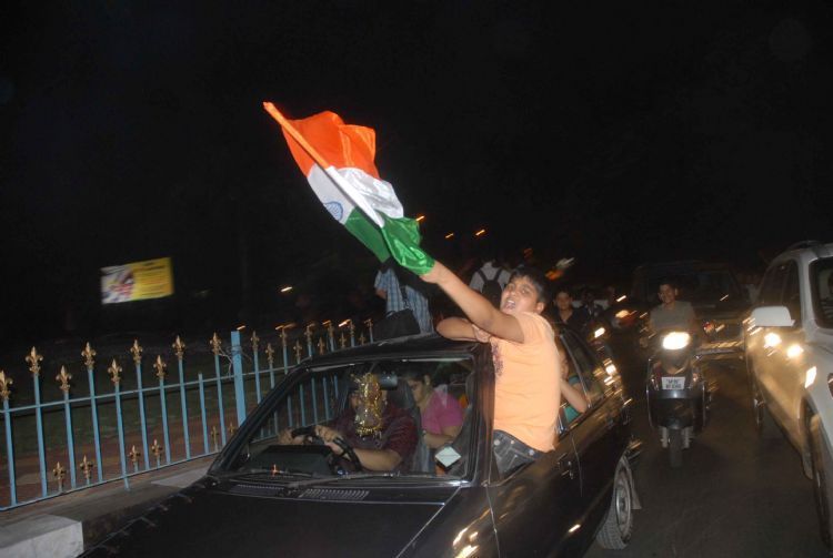 Hyderabad city erupts in joy. Scenes of dancing and singing and bursting of firecrackers witnessed all over the city. As the last wicket fell, fans burst firecrackers and came out on the roads dancing and singing. The policemen, who were out on the roads in good numbers, did not seem to mind the celebrations. Boisterous rallies were taken out on important thoroughfares such as Tank Bund, Necklace Road, Punjagutta-Begumpet main road, KBR Park main road, Musheerabad, Dilsukhnagar, Banjara Hills, and Jubilee Hills.