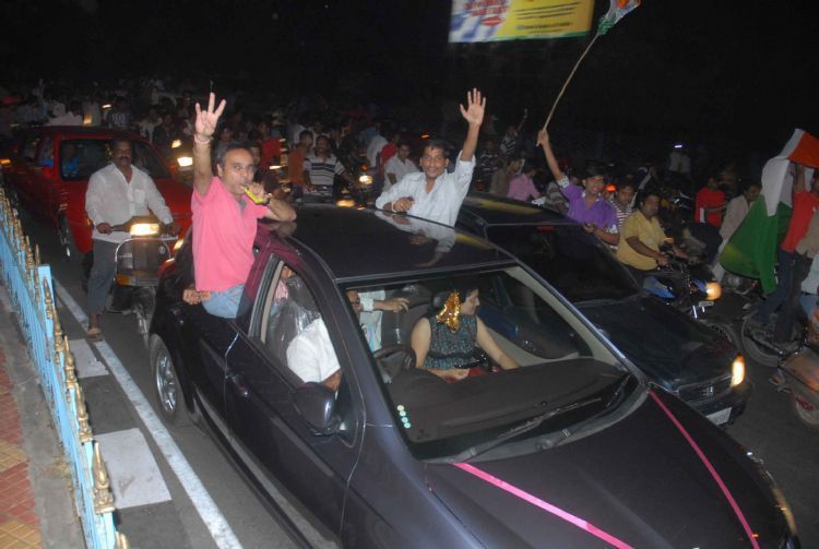 Hyderabad city erupts in joy. Scenes of dancing and singing and bursting of firecrackers witnessed all over the city. As the last wicket fell, fans burst firecrackers and came out on the roads dancing and singing. The policemen, who were out on the roads in good numbers, did not seem to mind the celebrations. Boisterous rallies were taken out on important thoroughfares such as Tank Bund, Necklace Road, Punjagutta-Begumpet main road, KBR Park main road, Musheerabad, Dilsukhnagar, Banjara Hills, and Jubilee Hills.