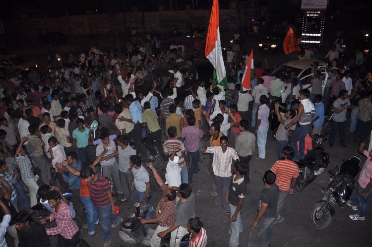 Hyderabad city erupts in joy. Scenes of dancing and singing and bursting of firecrackers witnessed all over the city. As the last wicket fell, fans burst firecrackers and came out on the roads dancing and singing. The policemen, who were out on the roads in good numbers, did not seem to mind the celebrations. Boisterous rallies were taken out on important thoroughfares such as Tank Bund, Necklace Road, Punjagutta-Begumpet main road, KBR Park main road, Musheerabad, Dilsukhnagar, Banjara Hills, and Jubilee Hills.
