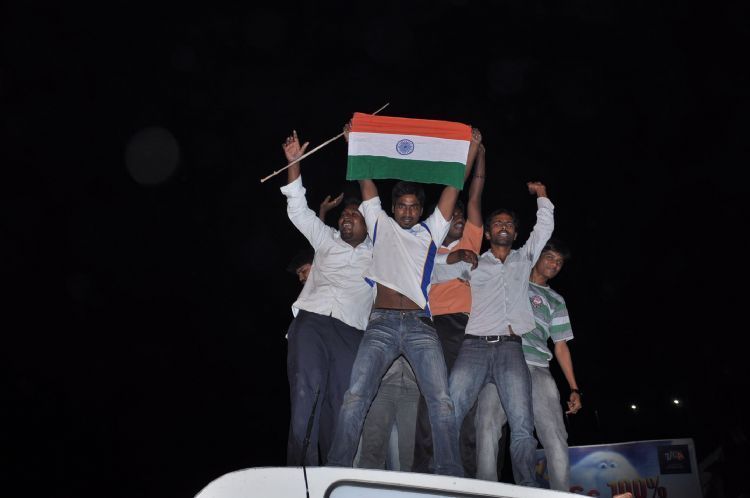 Hyderabad city erupts in joy. Scenes of dancing and singing and bursting of firecrackers witnessed all over the city. As the last wicket fell, fans burst firecrackers and came out on the roads dancing and singing. The policemen, who were out on the roads in good numbers, did not seem to mind the celebrations. Boisterous rallies were taken out on important thoroughfares such as Tank Bund, Necklace Road, Punjagutta-Begumpet main road, KBR Park main road, Musheerabad, Dilsukhnagar, Banjara Hills, and Jubilee Hills.
