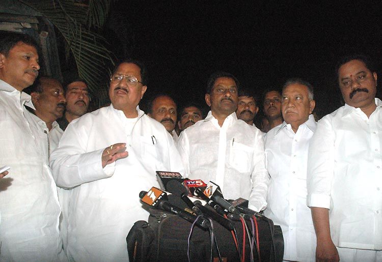 PCC President D.Srinivas speaking to press after working out a strategy to defeat Jagan in May 8 bypolls to Kadapa and Pulivendula seats with Congress leaders of Kadapa district at his residence in Hyderabad on Thursday.