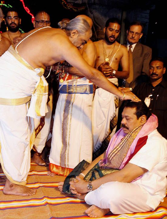 President of Sri Lanka Mr. Mahinda Rajapaksa visited Sri Vari Temple, Tirumala on Friday evening. Temple priests and officials have welcomed the President on his arrival. After darshan of lord, the EO I.Y.R.Krishna Rao presented Sri Vari Prasadam and the veda pandits of the temple have blessed him with Vedic Hymns at Ranganayakula Mandapam.