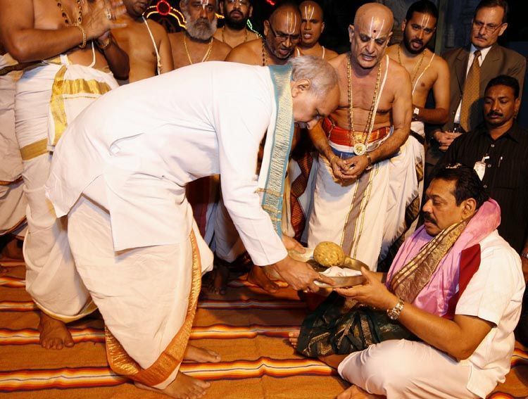 President of Sri Lanka Mr. Mahinda Rajapaksa visited Sri Vari Temple, Tirumala on Friday evening. Temple priests and officials have welcomed the President on his arrival. After darshan of lord, the EO I.Y.R.Krishna Rao presented Sri Vari Prasadam and the veda pandits of the temple have blessed him with Vedic Hymns at Ranganayakula Mandapam.