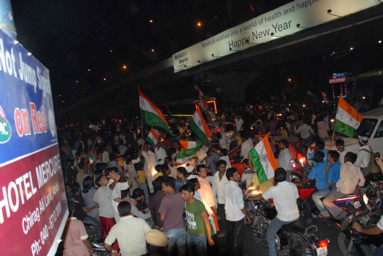 WORLD CUP OF JOY: The boisterous crowds were out chanting ‘Jai Ho' as they zipped across on their two-wheelers and cars jamming the city roads. Of course, the ubiquitous tri-colour fluttered and held high by the youngsters as their vehicles zoomed towards the Tank Bund – the epicentre of Hyderabadis celebrations.