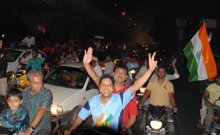 WORLD CUP OF JOY: The boisterous crowds were out chanting ‘Jai Ho' as they zipped across on their two-wheelers and cars jamming the city roads. Of course, the ubiquitous tri-colour fluttered and held high by the youngsters as their vehicles zoomed towards the Tank Bund – the epicentre of Hyderabadis celebrations.