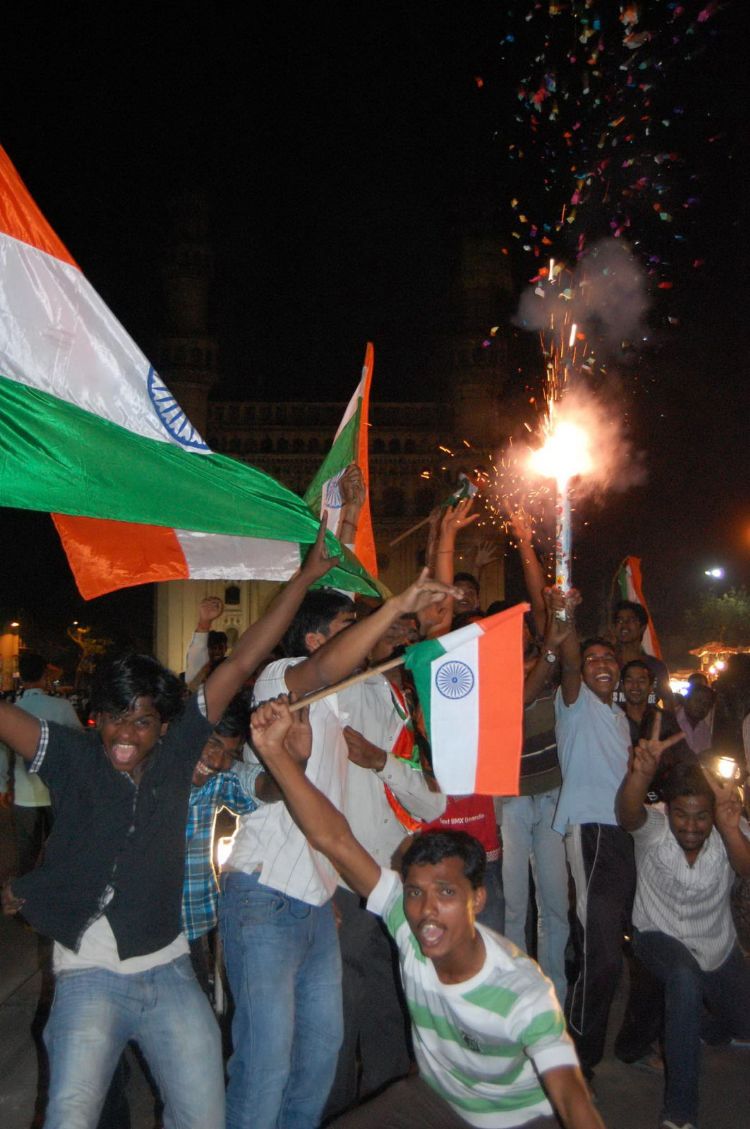 WORLD CUP OF JOY: The boisterous crowds were out chanting ‘Jai Ho' as they zipped across on their two-wheelers and cars jamming the city roads. Of course, the ubiquitous tri-colour fluttered and held high by the youngsters as their vehicles zoomed towards the Tank Bund – the epicentre of Hyderabadis celebrations.