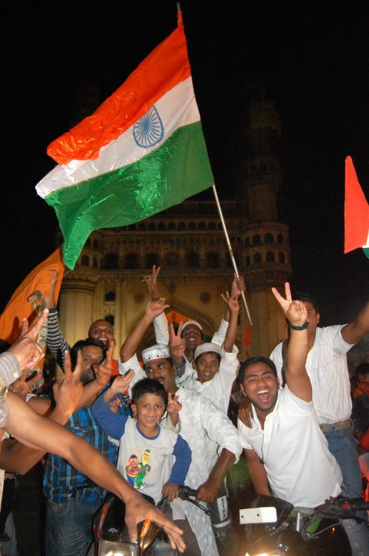 WORLD CUP OF JOY: The boisterous crowds were out chanting ‘Jai Ho' as they zipped across on their two-wheelers and cars jamming the city roads. Of course, the ubiquitous tri-colour fluttered and held high by the youngsters as their vehicles zoomed towards the Tank Bund – the epicentre of Hyderabadis celebrations.