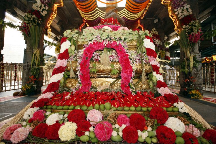 Special rituals like - visesha padi procession and visesha nuthana vastrams procession was performed inside the Vimana prakaram of the temple complex followed by the auspicious `Panchanga Sravanam' to the processional deities of Lord Malayapa and his consorts atop Sarvabhoopala Vahanam in Bangaru vakili, in front of the presiding deity, by the temple priests.