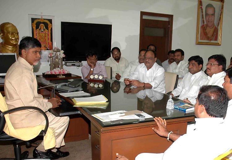 Telugu Desam Party president N Chandrababu Naidu meets party leaders from Kadapa district to discuss the names of party candidates for the ensuing Kadapa Lok Sabha and Pulivendula Assembly constituencies’ by-elections at NTR Trust Bhavan in Hyderabad on Tuesday. INN Photos