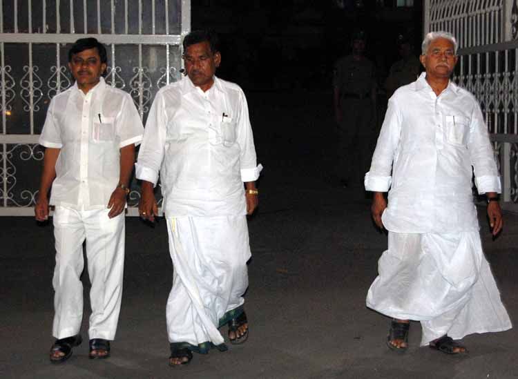 Congress Legislators emerge out of a meeting with Chief Minister N Kiran Kumar Reddy held at the Chief Minister's Camp Office at Begumpet in Hyderabad on Wednesday. INN Photos
