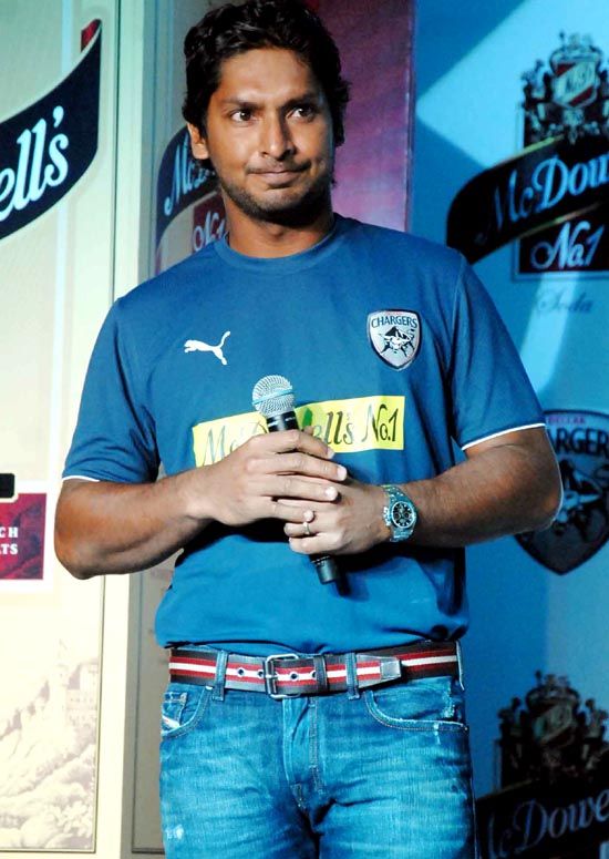 Captain of Deccan Chargers Kumar Sangakara interacts with media persons in Hyderabad on Thursday. INN Photos