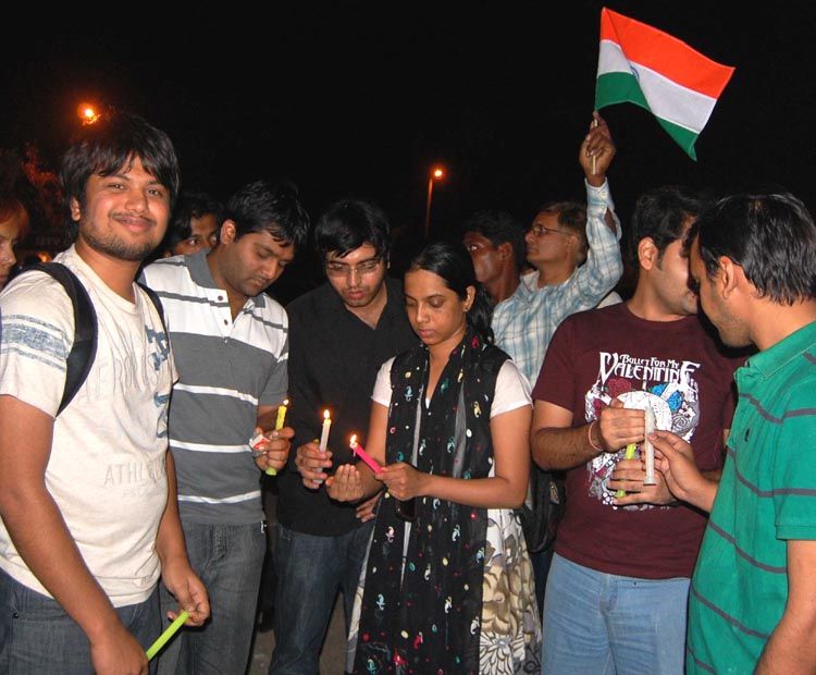 Telangana Jagruti president K Kavitha leads a ‘Candlelight Rally’ to express solidarity with the hunger fast taken up by social activist Anna Hazare at People’s Plaza, Necklace Road in Hyderabad on Thursday. INN Photos