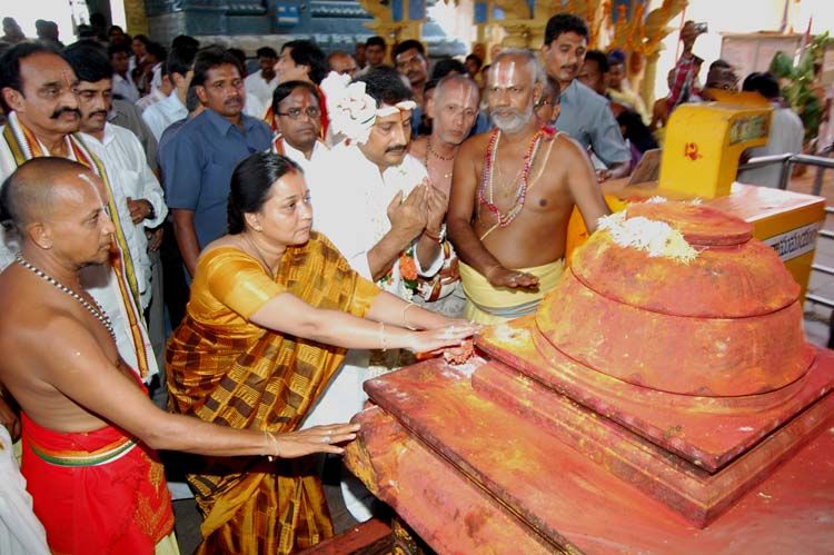 Chief Minister N Kiran Kumar Reddy participated in the celestial wedding of Lord Srirama with Goddess Sita Devi being held at Midhila Stadium in Bhadrachalam and presented silk clothes and 'Mutyala Talambralu' on behalf of the State government on the occasion of Srirama Navami on Tuesday.