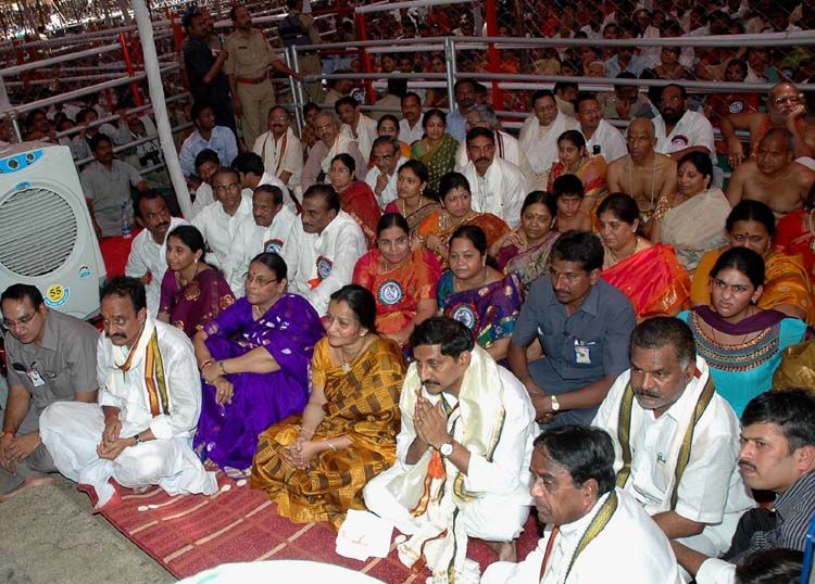 Chief Minister N Kiran Kumar Reddy participated in the celestial wedding of Lord Srirama with Goddess Sita Devi being held at Midhila Stadium in Bhadrachalam and presented silk clothes and 'Mutyala Talambralu' on behalf of the State government on the occasion of Srirama Navami on Tuesday.