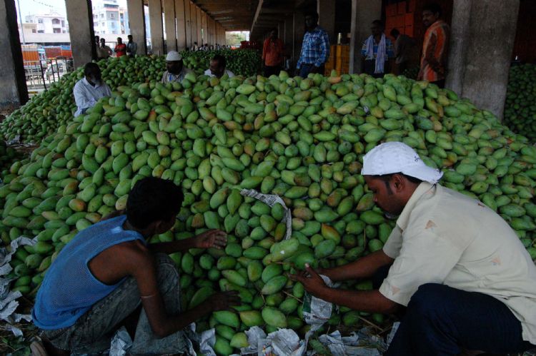 Traders sort Mangoes at the Kothapet fruit market in Hyderabad on Saturday as the King of Fruits makes its seasonal entry for 2011. INN Photos