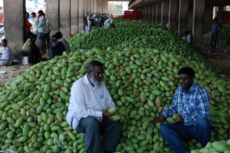 Traders sort Mangoes at the Kothapet fruit market in Hyderabad on Saturday as the King of Fruits makes its seasonal entry for 2011. INN Photos