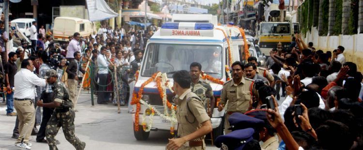 Heart rending scenes witnessed in Puttaparthi after the announcement of Satya Sai Baba's demise on Sunday morning. Baba's devotees who gathered in large number near Prashanti Nilayam cried their hearts on the site of an ambulance carrying the godmans body from hospital to Sai Kulwant Hall in Puttaparthi.