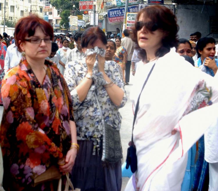 Heart rending scenes witnessed in Puttaparthi after the announcement of Satya Sai Baba's demise on Sunday morning. Baba's devotees who gathered in large number near Prashanti Nilayam cried their hearts on the site of an ambulance carrying the godmans body from hospital to Sai Kulwant Hall in Puttaparthi.