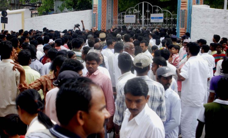 Heart rending scenes witnessed in Puttaparthi after the announcement of Satya Sai Baba's demise on Sunday morning. Baba's devotees who gathered in large number near Prashanti Nilayam cried their hearts on the site of an ambulance carrying the godmans body from hospital to Sai Kulwant Hall in Puttaparthi.