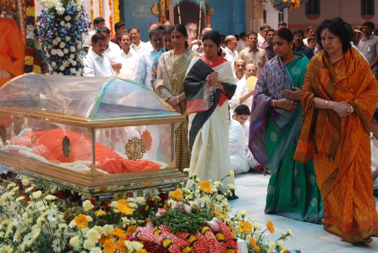Devotees including State, Central ministers, Politicians, Celebrities paying their last respect to the body of Sri Sathya Sai Baba at the Ashram in Puttaparthi on Monday.