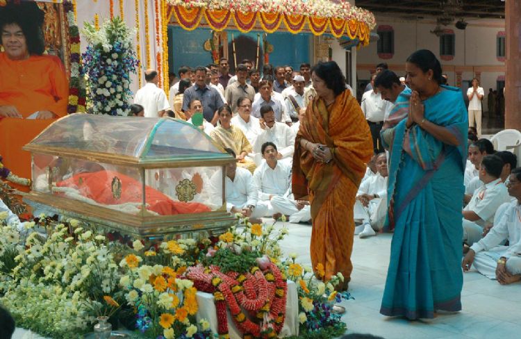 Devotees including State, Central ministers, Politicians, Celebrities paying their last respect to the body of Sri Sathya Sai Baba at the Ashram in Puttaparthi on Monday.